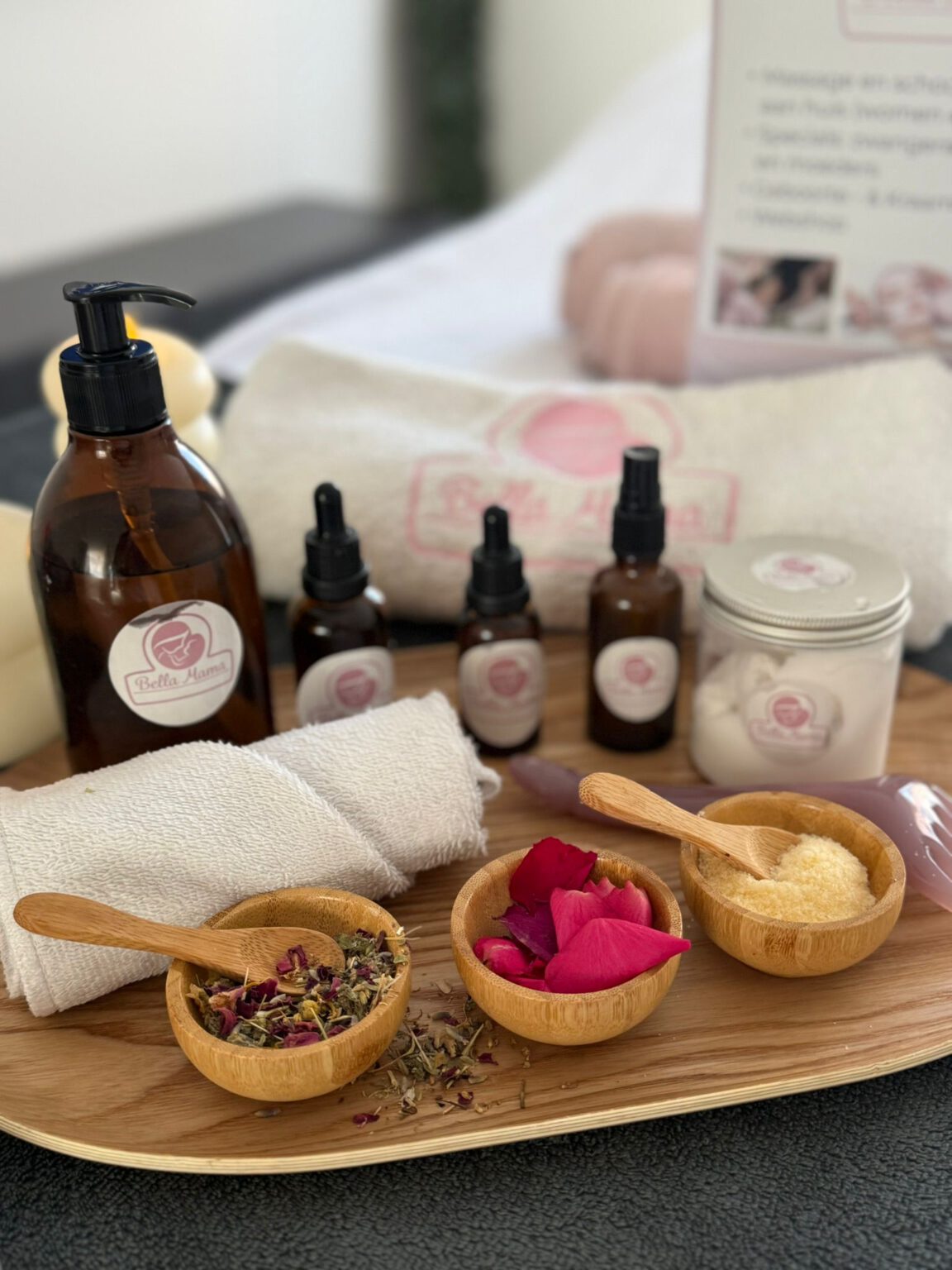 Bij Bella Mama bieden wij een breed aanbod aan ontspannings-, zwangerschaps- en kraamtijdbehandelingen aan huis. Wij nemen alle benodigdheden mee, zodat jij volledig kunt ontspannen zonder de deur uit te hoeven.